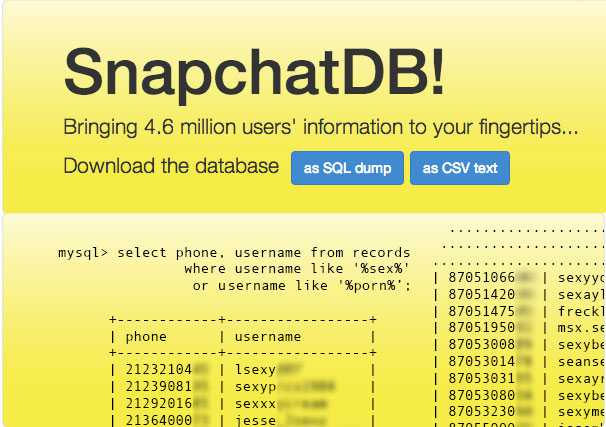 Il faut croire que les mesures prises étaient totalement insuffisantes, car pour fêter la nouvelle année un groupe d’individus s’est servi des informations fournies par GibsonSec et a mis en ligne sur le site http://snapchatdb.info une base de données de 4.6 millions de noms de comptes Snapchat associés au numéro de téléphone de l’utilisateur.