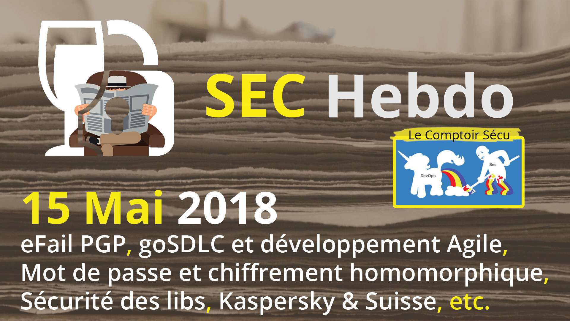 eFail PGP, goSDLC et développement Agile, Mot de passe et chiffrement homomorphique, Sécurité des libs, Kaspersky & Suisse, etc.