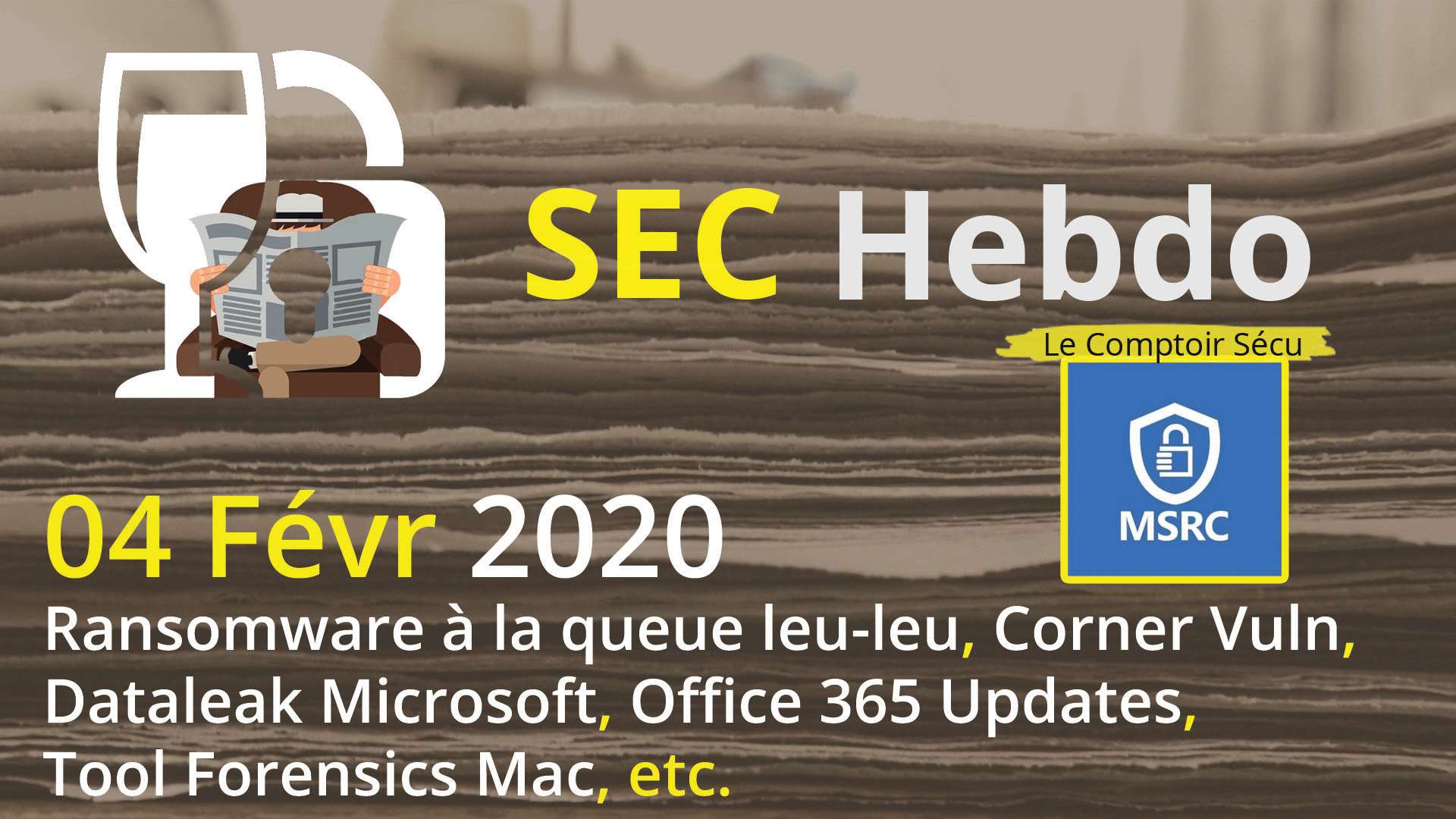 Ransomware à la queue leu-leu, Corner Vuln, Dataleak Microsoft, Office 365 Updates, Tool Forensics Mac, etc.