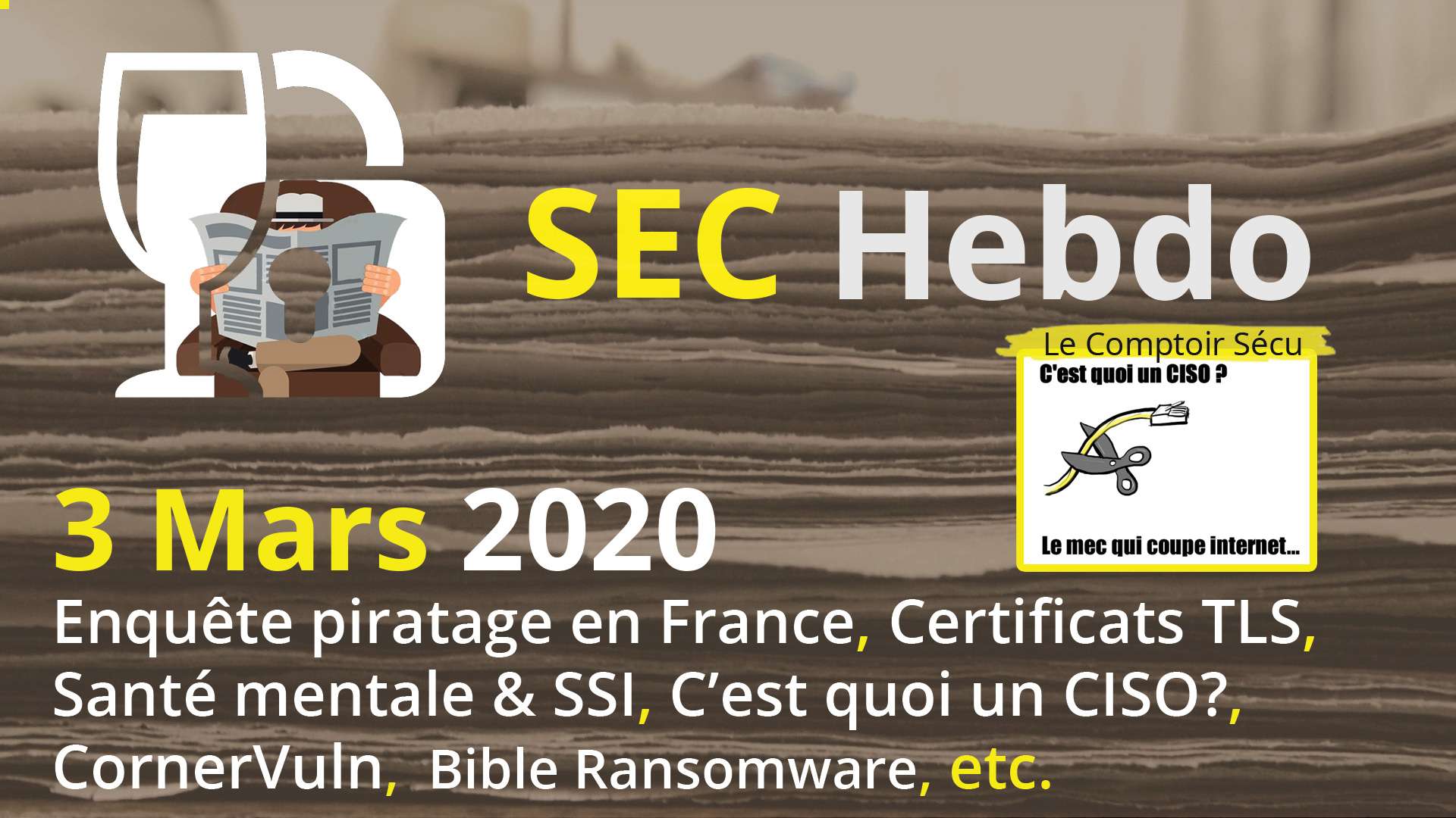 Enquête piratage en France, Certificats TLS, Santé mentale & SSI, C'est quoi un CISO ?, CornerVuln, Bible Ransomware, etc.
