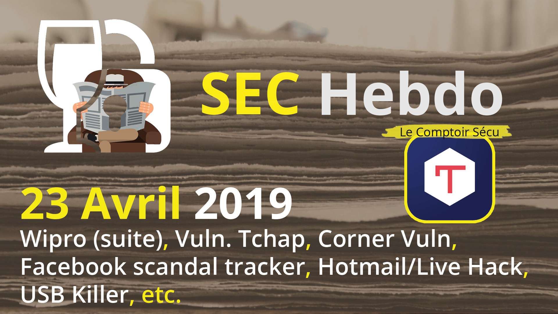 Wipro (suite), Vuln. Tchap, Corner vuln., Facebook scandal tracker, Hotmail/Live hack, USB Killer, etc.