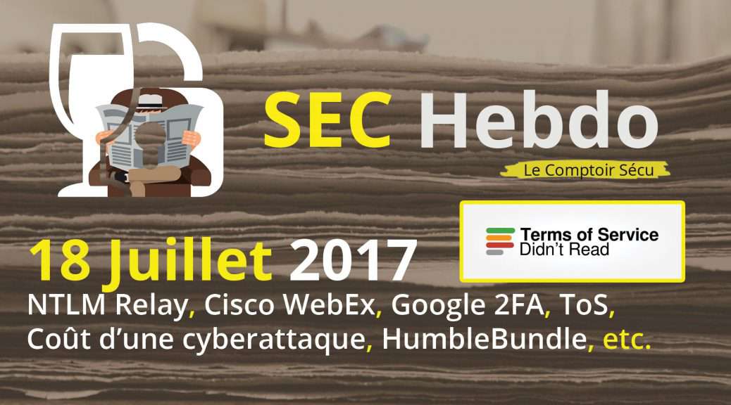 NTLM Relay, Cisco WebEX, Google 2FA, ToS, Coût d'une cyberattaque, HumbleBundle, etc.