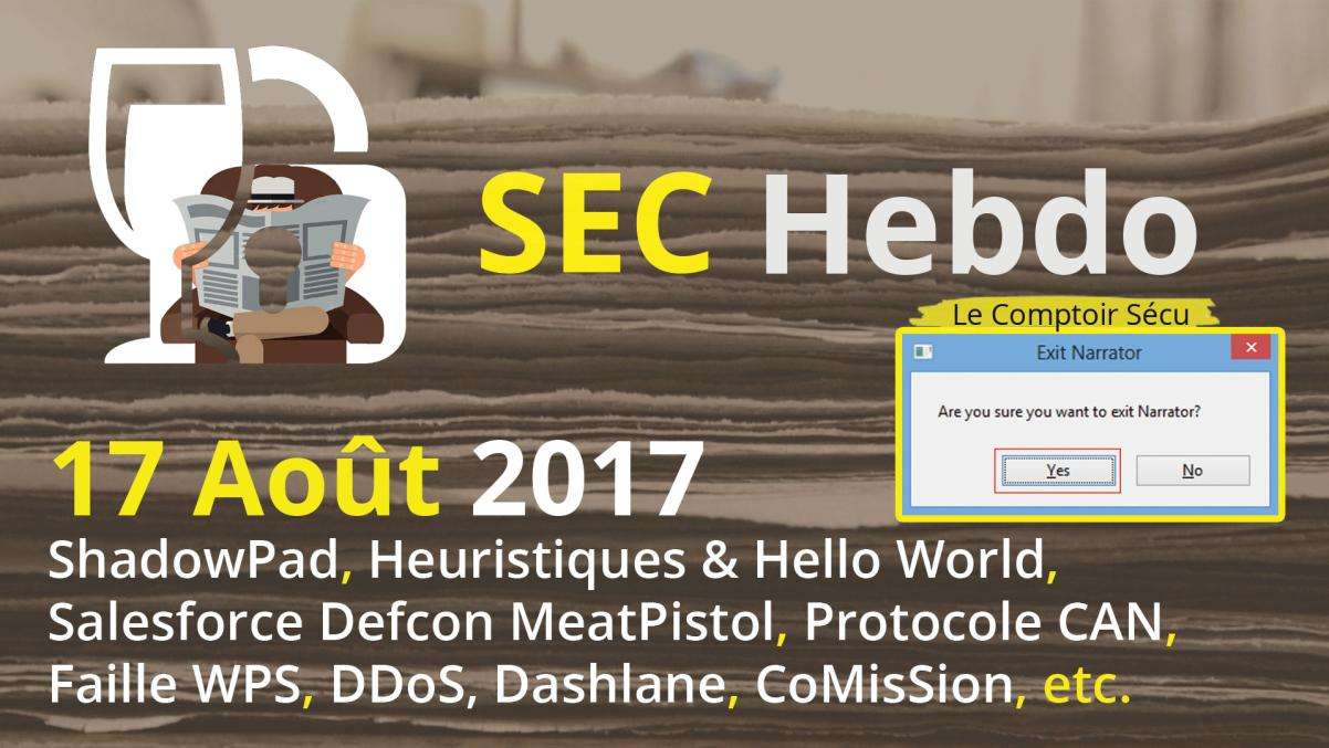 ShadowPad, Heuristiques & Hello World, Salesforce Defcon MeatPistol, Protocole CAN, Faille WPS, DDoS, Dashlane, CoMiSsion, etc.