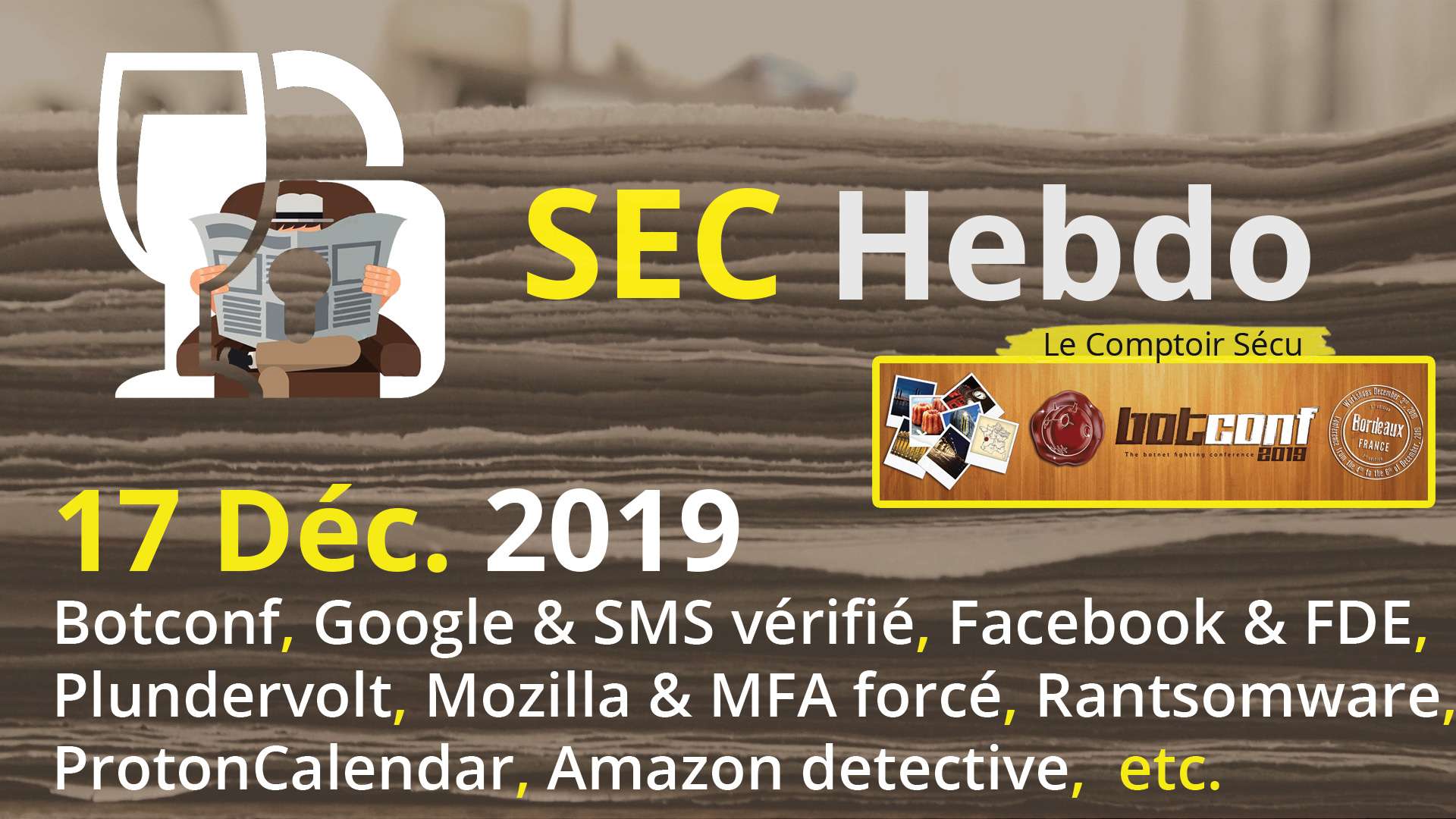 Botconf, Google & SMS vérifié, Facebook & FDE, Plundervolt, Mozilla & MFA forcé, Rantsomware, ProtonCalendar, Amazon Detective, etc.