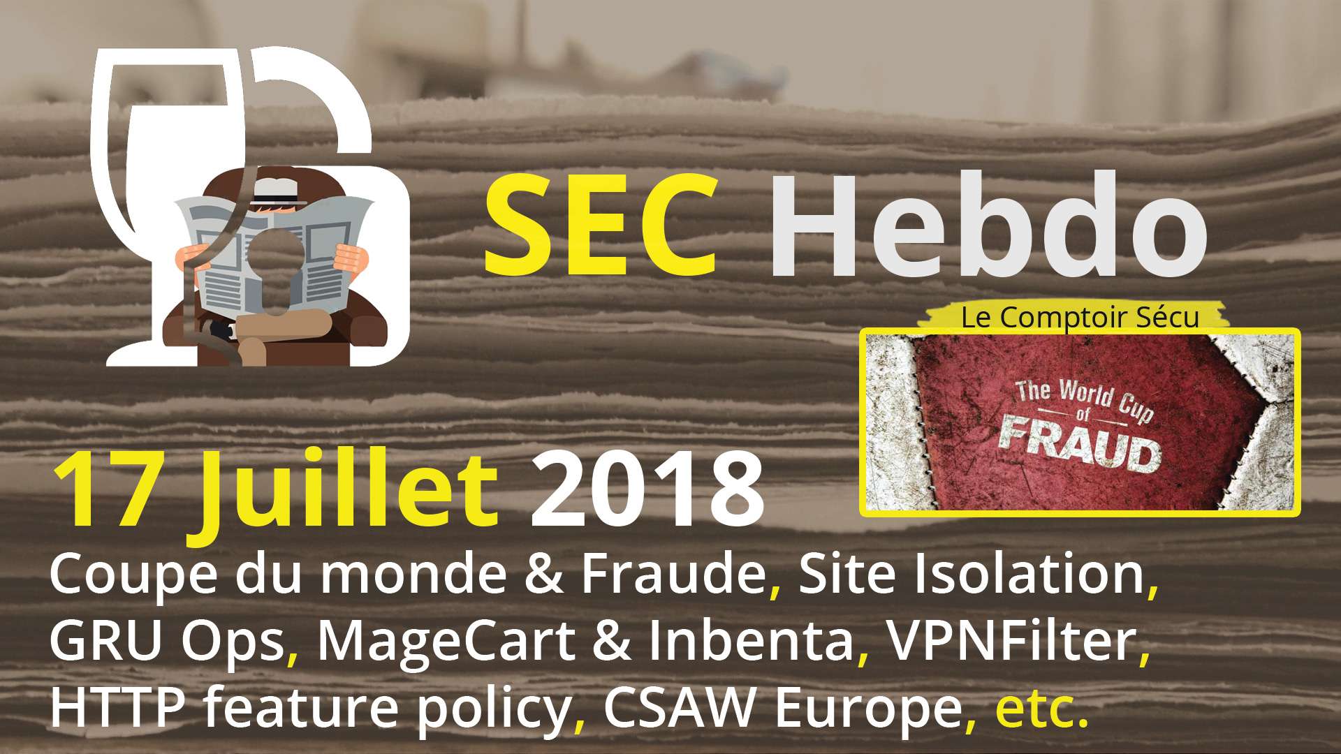 Coupe du monde et fraude, Site isolation, GRU Ops, MageCart et Inventa, VPN Filter, HTTP feature policy, CSAW Europe, etc.