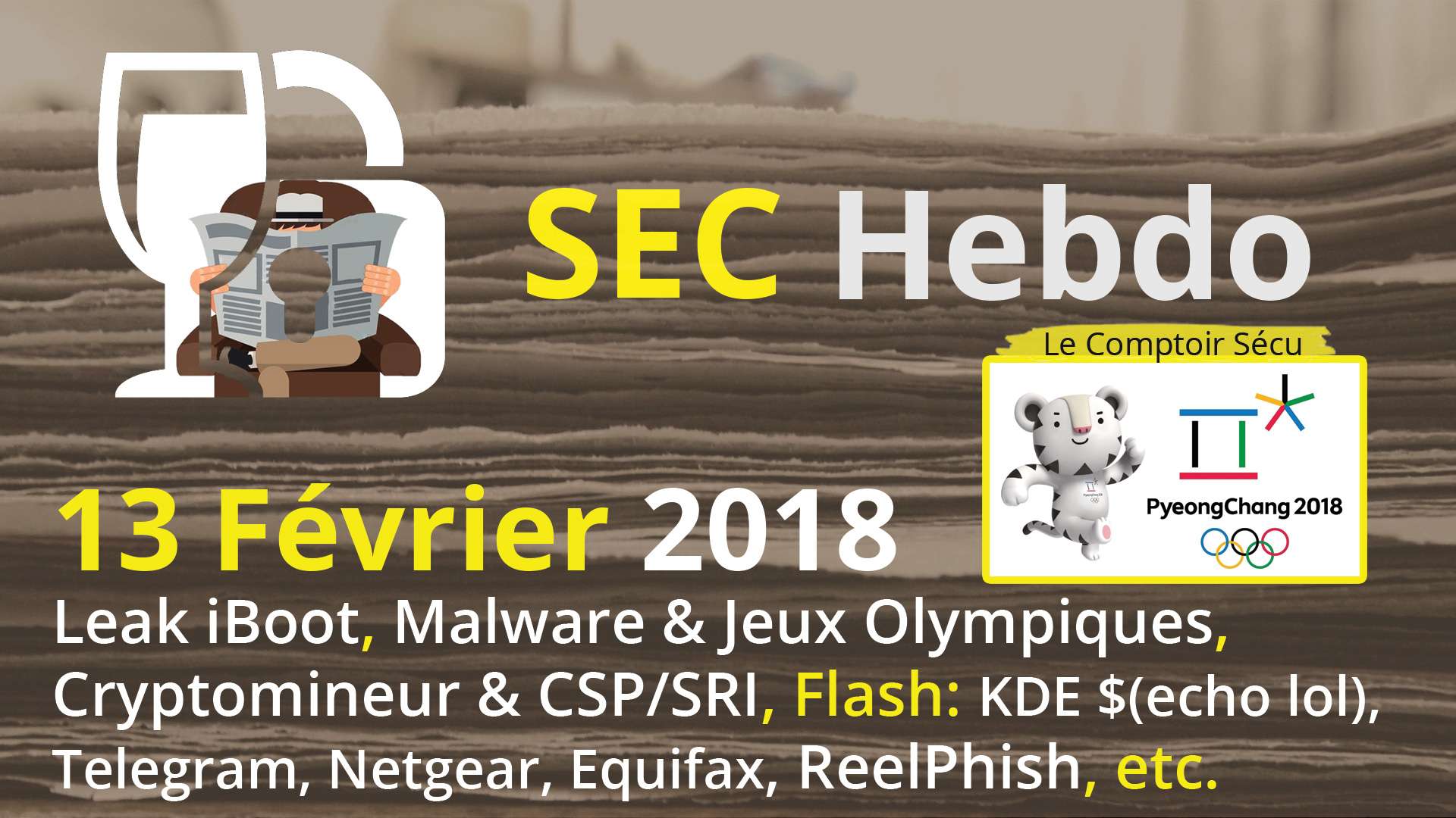 Leak iBoot, Malware & Jeux Olympiques, Cryptomineur & CSP/SRI, Flash: KDE $(echo lol), Telegram, Netgear, Equifax, ReelPhish, etc.