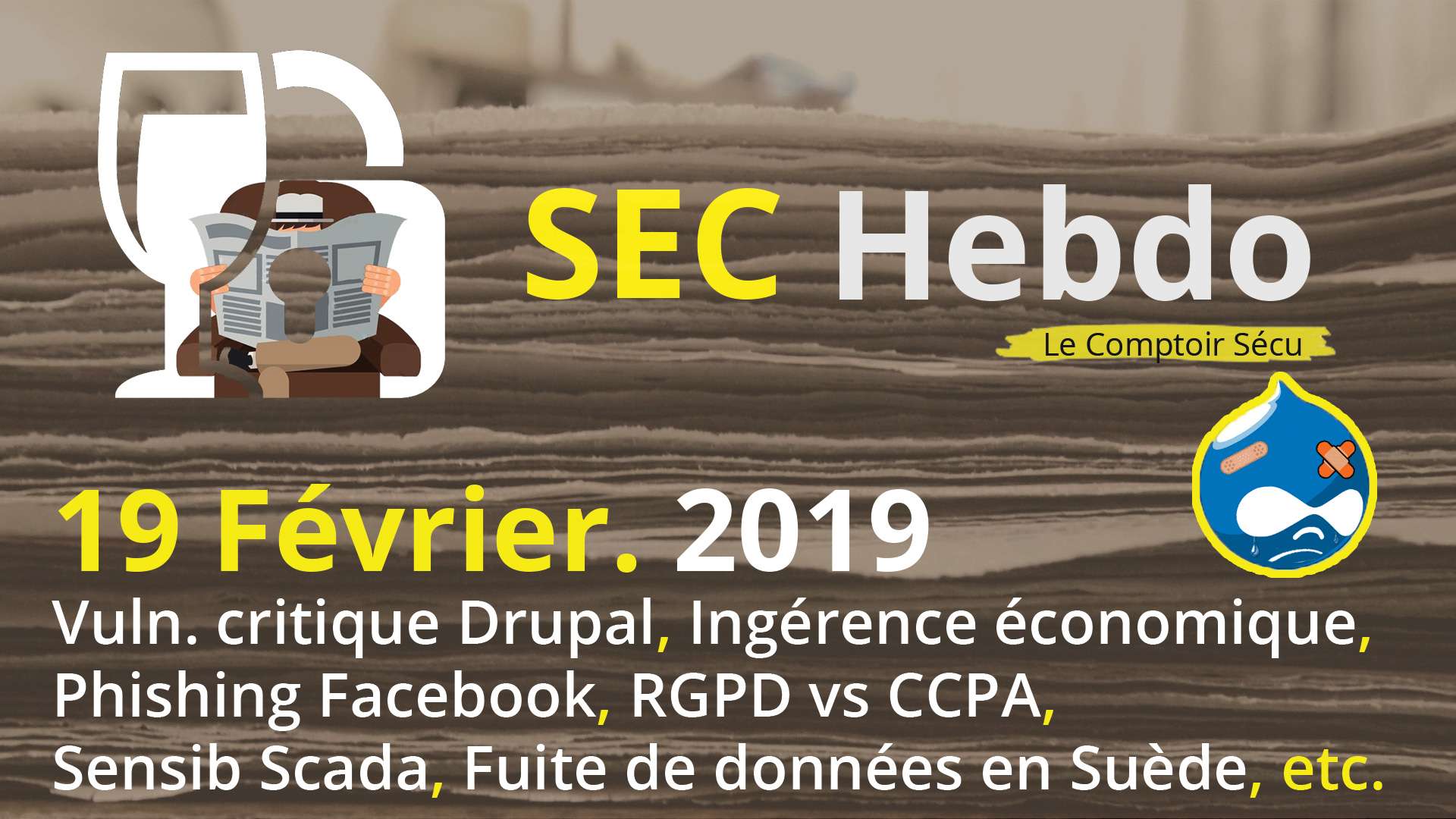 Vuln. critique Drupal, Ingérence économique, Phishing Facebook, RGPD vs CCPA, Sensib Scada, Fuite de données en Suède, etc.