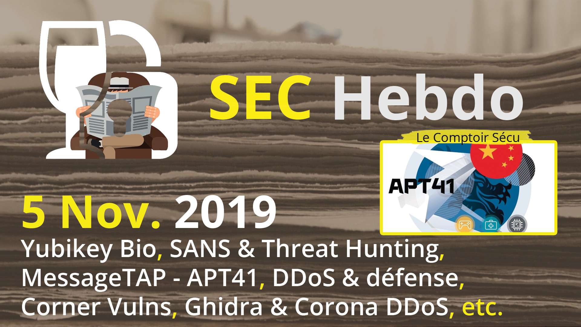Yubikey Bio, SANS & Threat Hunting, MessageTAP - APT41, DDoS & défense, Corner Vulns, Ghidra & Corona DDoS, etc.