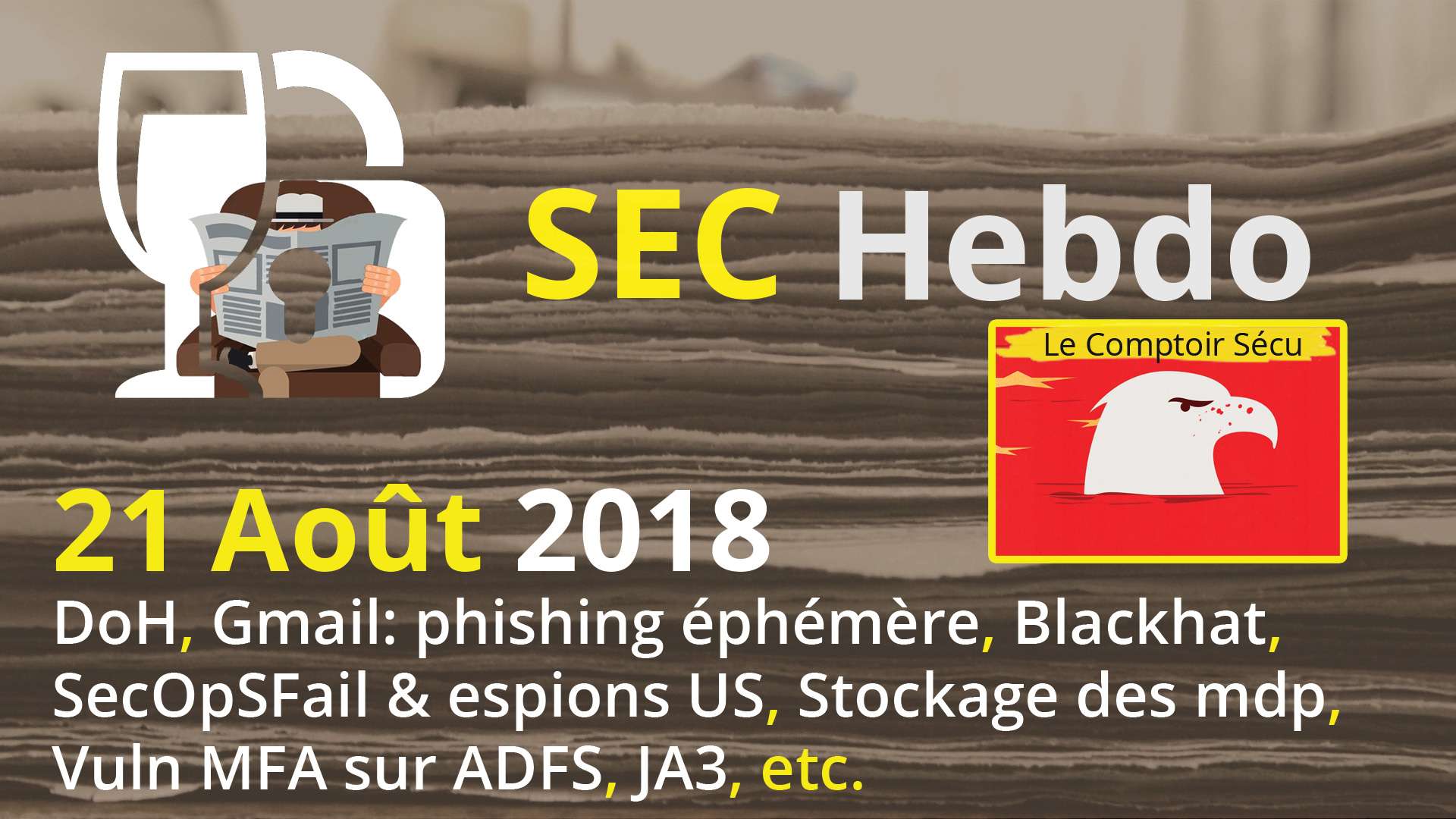 DoH, GMail: phishing ephémère, BlackHat, SecOpsFail & espions US, stockage des mdp, vuln MFA ADFS, JA3 etc.