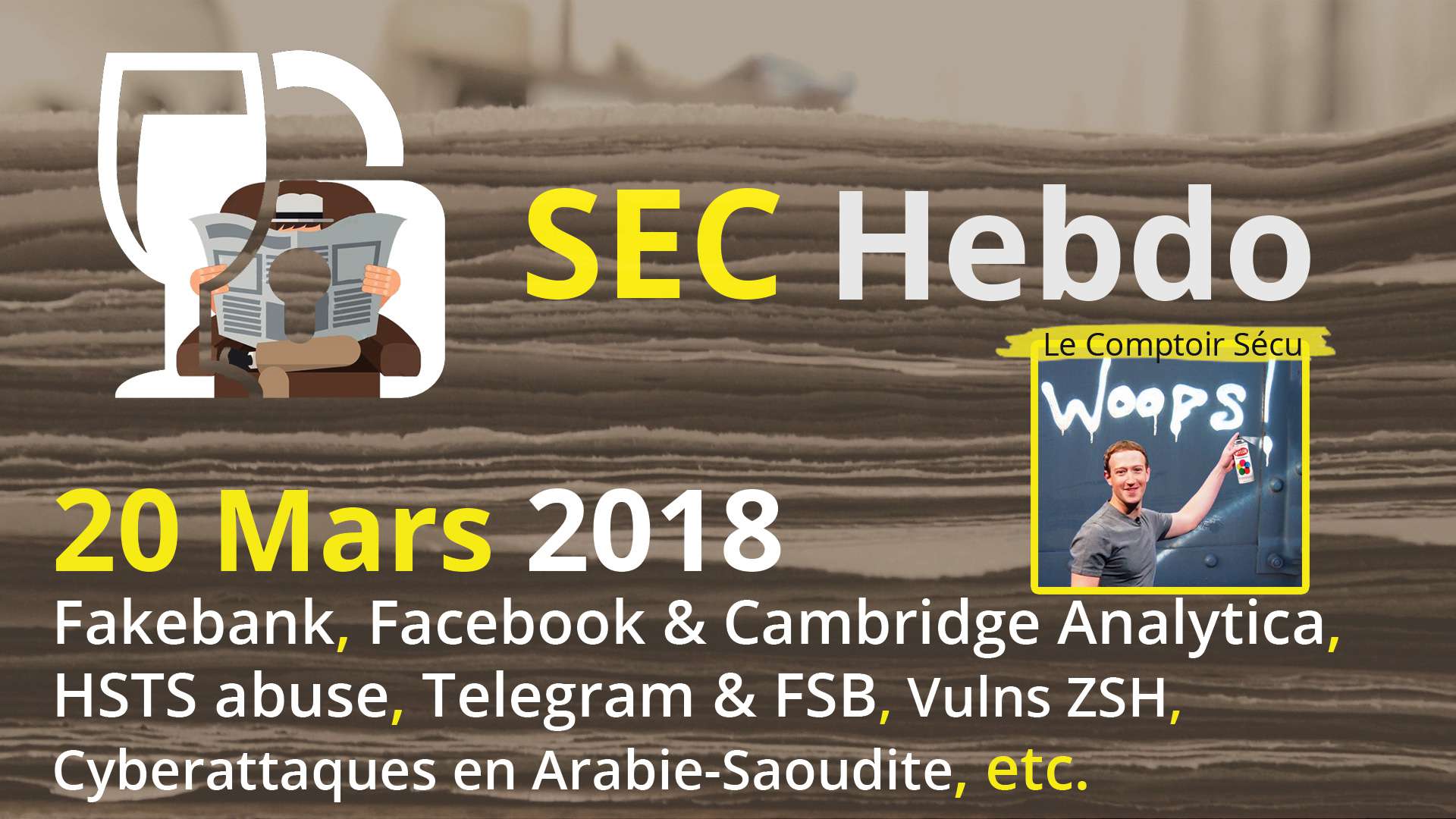 Fakebank, Facebook & Cambridge Analytica, HSTS Abuse, Telegram & FSB, Vulns ZSH, Cyberattaques en Arabie-Saoudite, etc.
