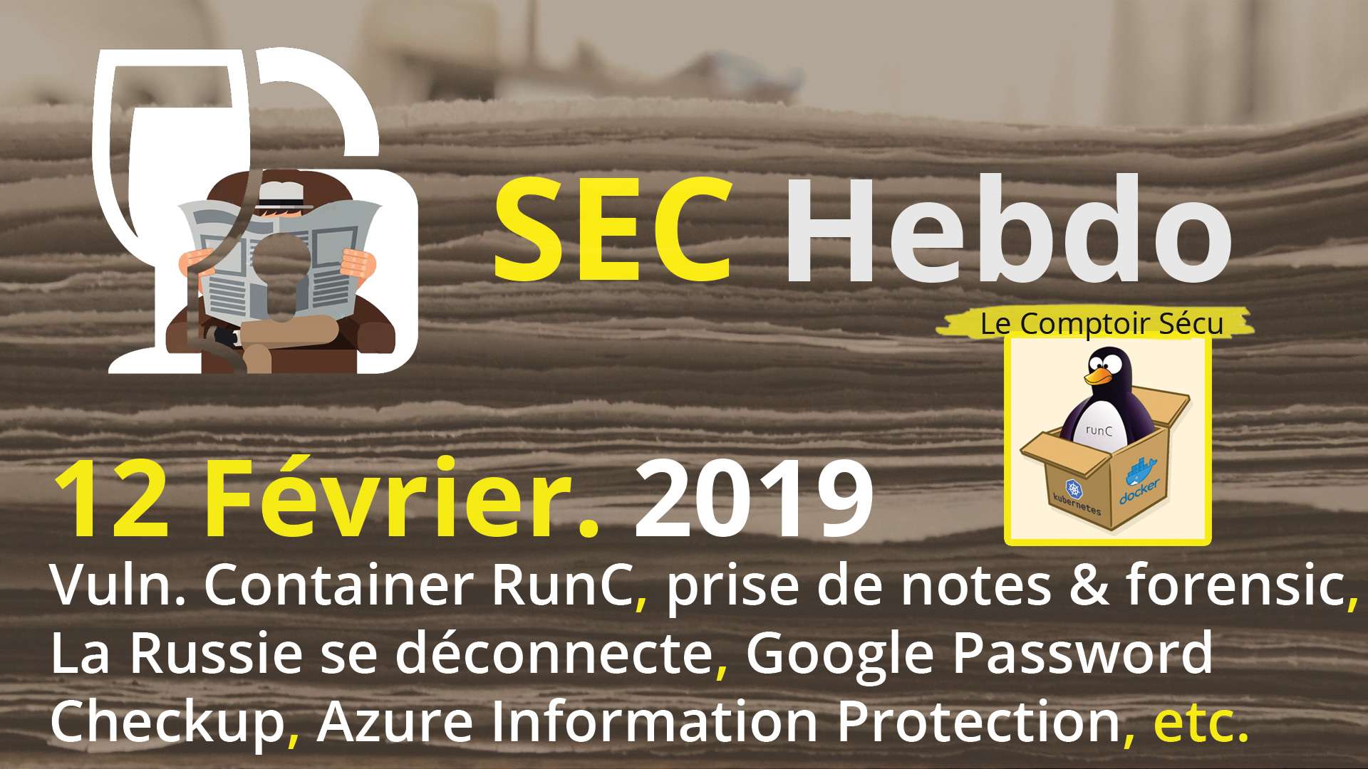 Vuln. container RunC, Prise de notes & forensics, La Russie se déconnecte, Google Password Checkup, Azure Information Protection, etc.