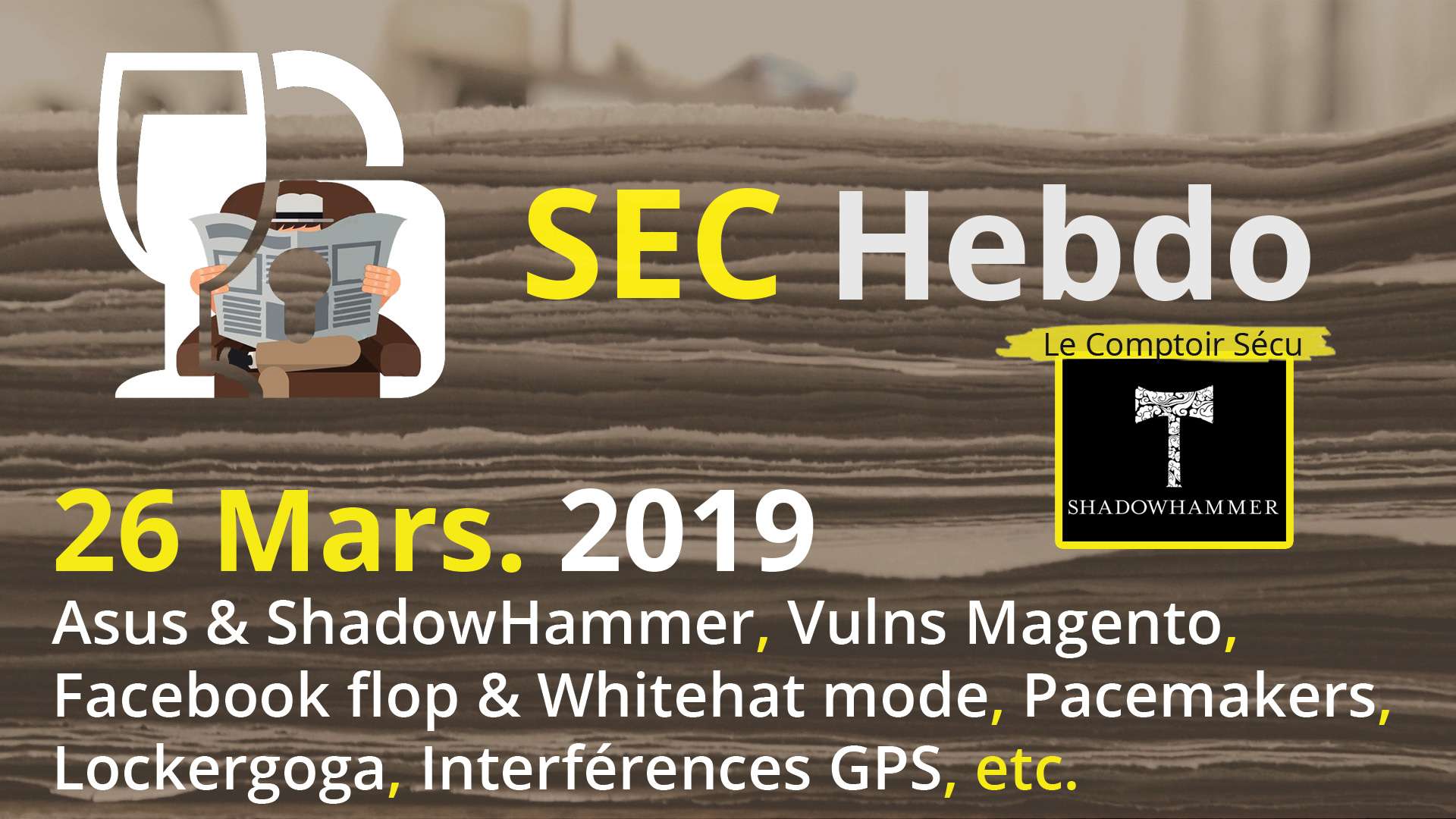 Asus & ShadowHammer, Vulns Magento, Facebook flop & Whitehat mode, Pacemakers, Lockergoga, Interférences GPS, etc.