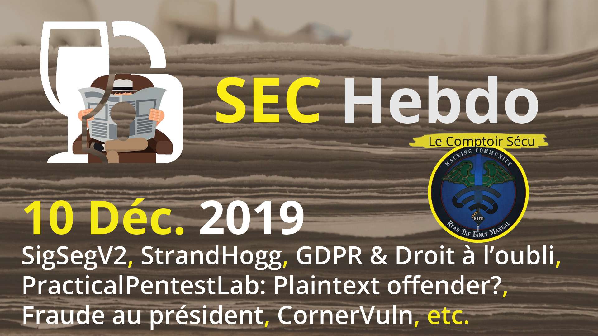 SigSegV2, StandHogg, GDPR & Droit à l'oubli, PracticalPentestLab: Plaintest offender?, Fraude au président, CornerVuln, etc.