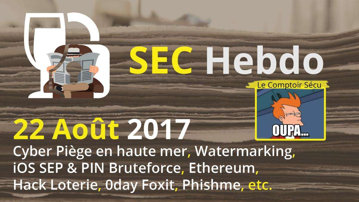 CyberPiège en haute mer, Watermarking, iOS SEP & PIN Bruteforce, Ethereum, Hack Lotterie, 0day Foxit, PhishMe, etc.