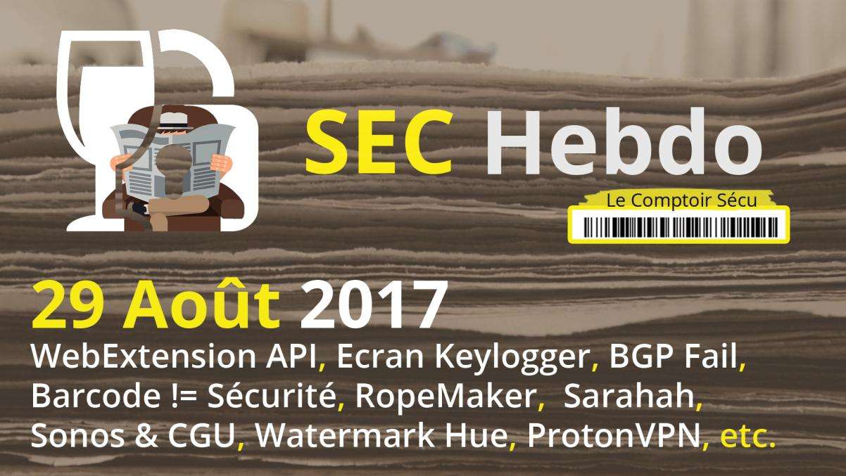 WebExtension API, Ecran Keylogger, BGP Fail, Barcode != Sécurité, RopeMaker, Sarahah, Sonos & CGU, Watermark Hue, ProtonVPN, etc.